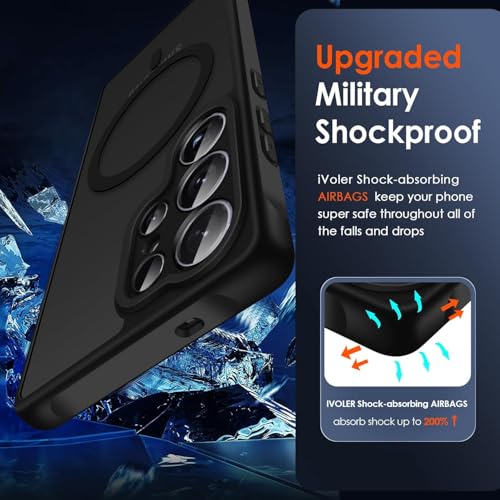 GRABIST - جراب مغناطيسي من جرابست لموبايل سامسونج جلاكسي نوت 20 الترا، حماية كاملة للكاميرا مع عدسات، متوافق مع الشحن اللاسلكي، جراب شفاف غير لامع ومضاد للصدمات لموبايل سامسونج نوت 20 الترا (أسود)