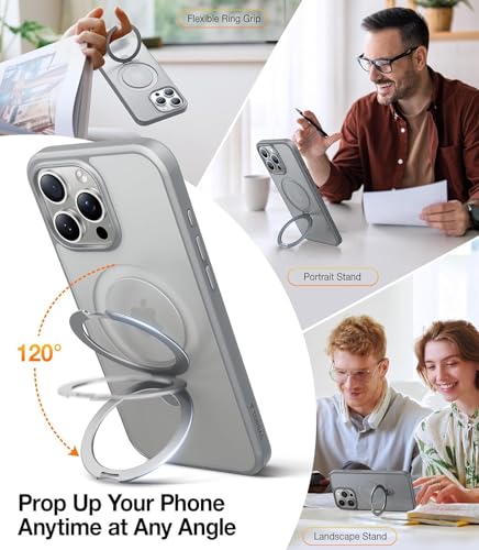 GRABIST - جراب حماية رفيع بحامل مغناطيسي شفاف مطفي بتصميم رفيع مقاوم للصدمات بمعايير عسكرية ومتوافق مع خاصية الشحن ماج سيف ويوفر حماية كاملة لموبايل آيفون 16 برو ماكس من جرابست، تيتانيوم طبيعي
