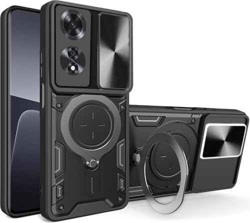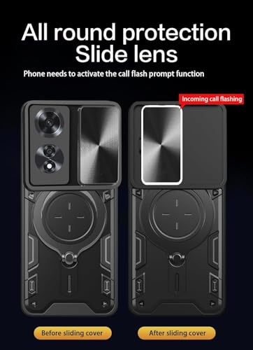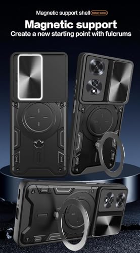 GRABIST - جراب حماية خلفي لموبايل اوبو A60 مع غطاء منزلق للكاميرا وحامل حلقي مدمج مضاد للصدمات رينو A60 شبكة الجيل الرابع 4G من جرابيست فضي