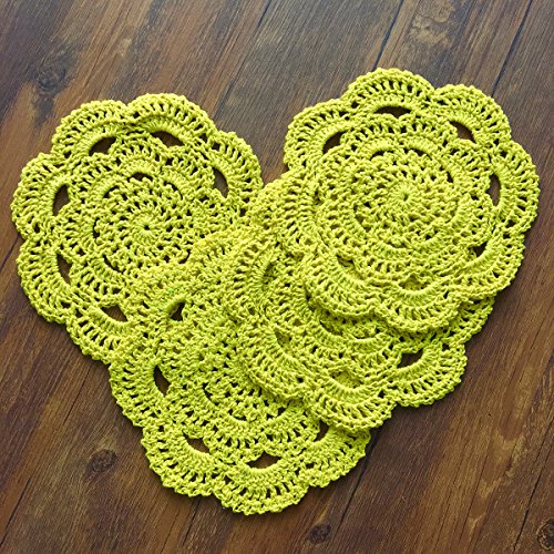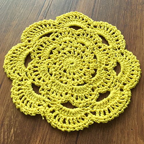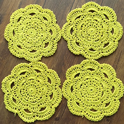 gracebuy - 4 PCS Yellow 6 Inch Round 100% HANDMADE Crochet Lace Coaster Placemats Doilies