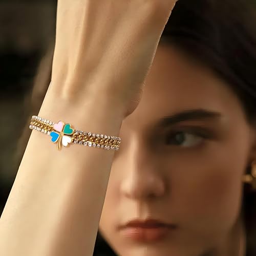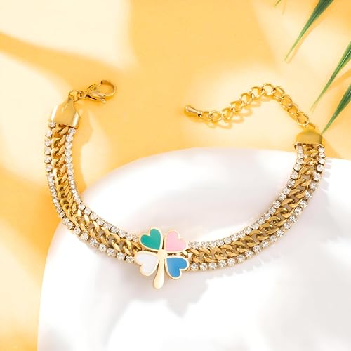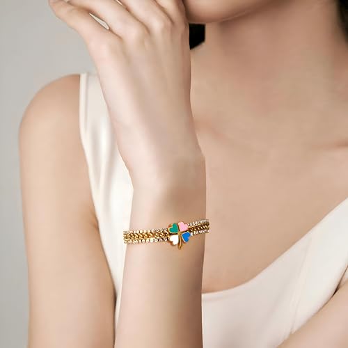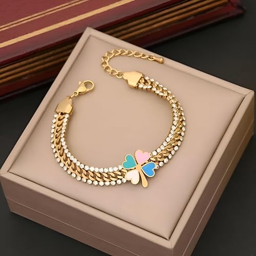 Generic - Graceful Women's Jewelry - Four-Leaf Clover Pendant Bracelet in Stainless Steel with Durable Coating, Thoughtful Gift Featuring Sparkling Carats for Every Celebration