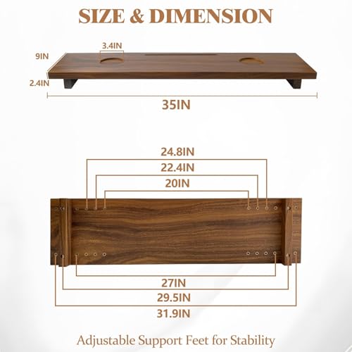 Graceware - Solid Walnut Bathtub Tray Wood, Large Bath Caddy Tray for Tub (35"x9"x2.5"), Anti-Tipping Bath Table Tray for Tub, Luxury Bathroom Accessories for Women/New Home/House Warming