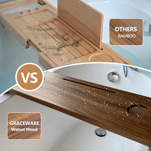 - Our walnut wood bathtub table tray embodies the essence of Graceware, we are commited to pursue superior quality, exquisite craftsmanship, and timeless elegance, ensuring an unmatched living experience that resonates with discerning tastes.