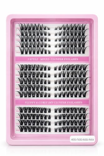 SNS SECRET NAILS SYSTEM - رموش عنقودية متدرجة 40D/50D/60D - وصلات رموش منفوشة ومجعدة يمكنك تركيبها بنفسك مع تصميم بطول تدريجي - مجموعات فردية خفيفة الوزن لمكياج العيون الطبيعي الى الدرامي