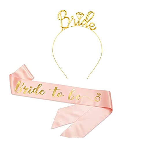 GRAND SHOP - Premium Bride to Be Sash with Glossy Headband (Golden - Rose Gold)