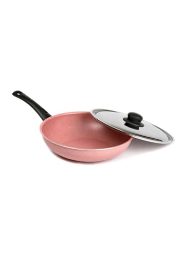 generic - طاسة قلي عميقة من الجرانيت بغطاء مقاس 28 سم، لون كشمير