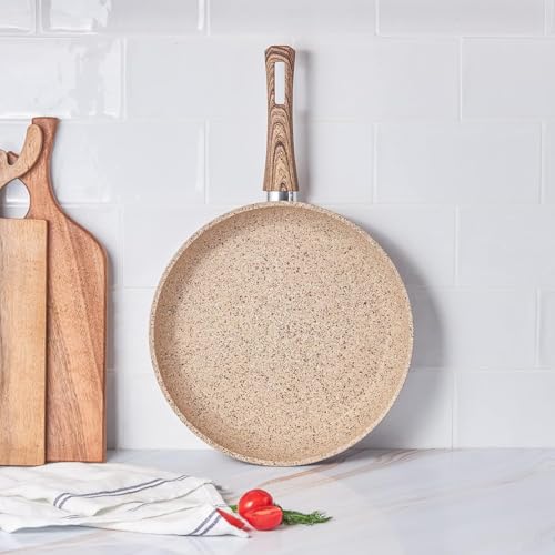 - 【DURABLE AND SCRATCH RESISTANT MATERIAL】The pan is made of high-quality granite that is scratch and corrosion-resistant, ensuring long life of the pan while maintaining its shape and performance after repeated use, becoming the essential tool in every kitchen and provides excellent and sustainable culinary experience.