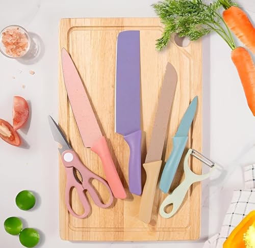 Generic - سكاكين بمقبض جرانيت - مجموعة متينة من 6 قطع مع شفرات ملونة، ستيل مقاوم للصدأ، مقشرة، مقصات شديدة التحمل للاستخدام اليومي في الطهي