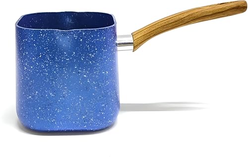 - Stone-granite body paired with a silicone, wood-look handle for a comfortable grip.