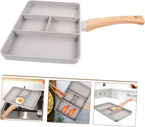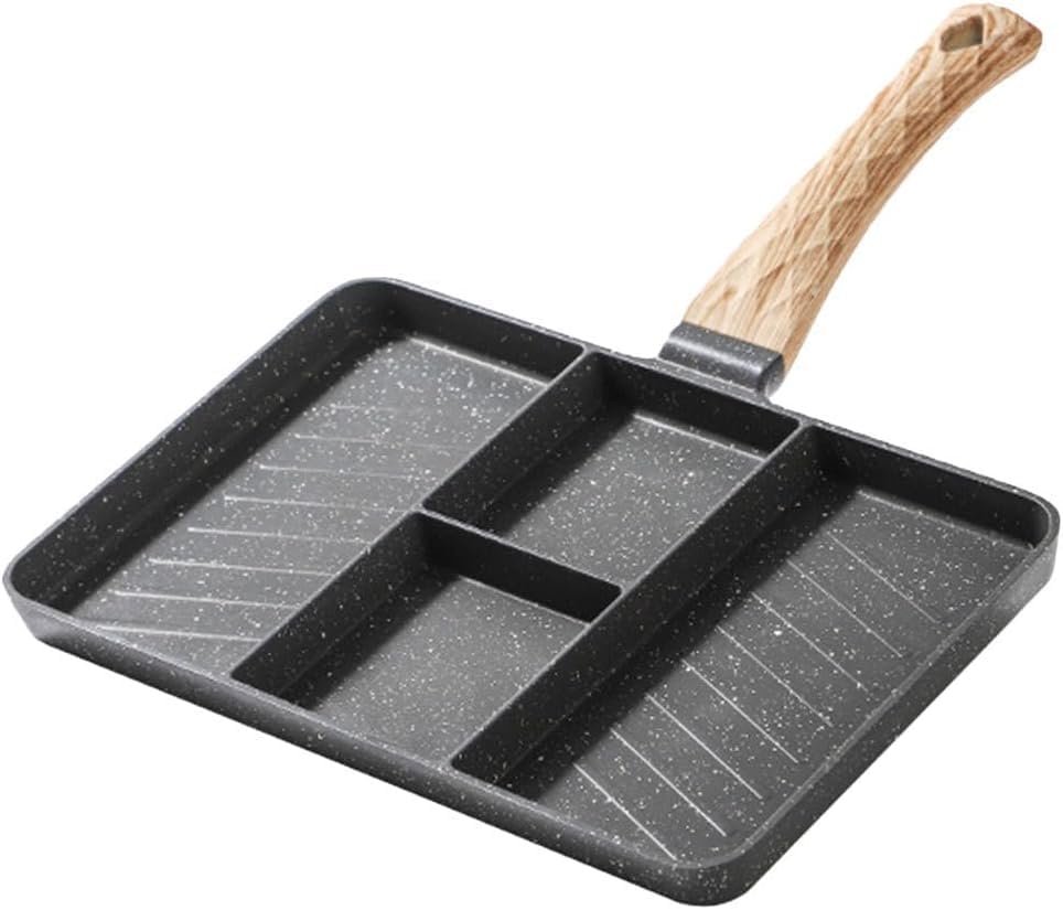 Generic - مقلاة جرانيت غير لاصقة رباعية الاقسام بمقبض خشبي قوي لطهي البيض والبان كيك والبرغر ووجبات الافطار، لون ابيض