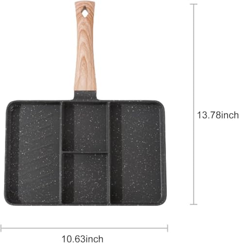 - 【توزيع فعال للحرارة】 مصممة بهيكل جرانيت سميك ومتين، هذه المقلاة توزع الحرارة بالتساوي على جميع الأقسام الأربعة، مما يقلل من البقع الساخنة ويضمن طهي كل جزء بنفس الوتيرة، مما يساعد على منع عدم الطهي أو الاحتراق مع تحسين كفاءة الطاقة ومنحك نتائج طهي موثوقة واحترافية في المنزل.