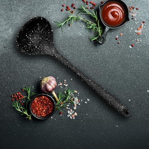 - تصميم فاخر: مغرفة سيليكون أنيقة بنمط الجرانيت بتصميم مرقط، مثالية للمطابخ الحديثة وتقديم الحساء واليخنات والصلصات بأناقة