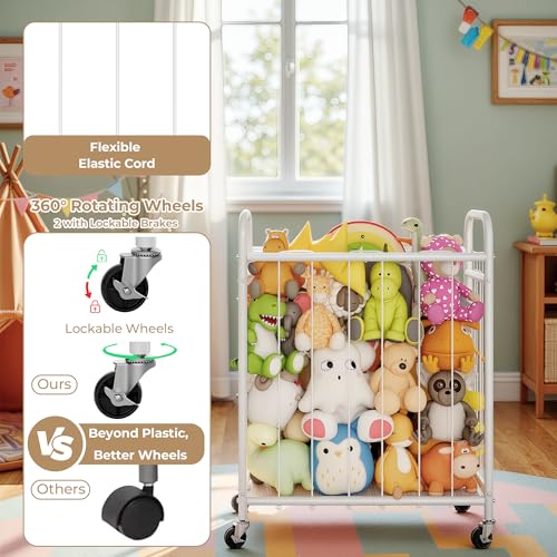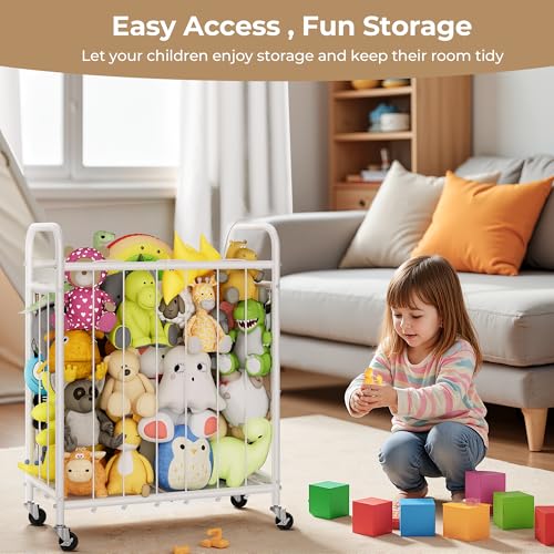 - Large Capacity: With a 160L capacity (26"L x 16½"W x 33½"H), this storage cart easily holds up to 30 medium-sized stuffed animals, dolls, or toys. The open-top design allows quick and easy access to toys, making it ideal for children.