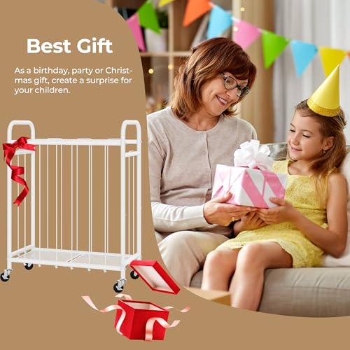 - Easy to Move with 360° Wheels: This toy storage cart is equipped with four 360° smooth metal wheels, which are more durable than the plastic wheels on the market. Adults and children can easily move toys around the room.