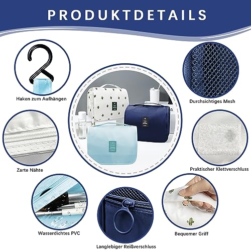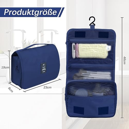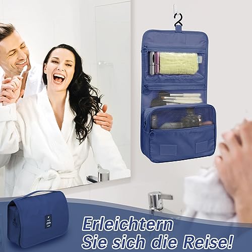 Grantop - Grantop Hanging Toiletry Bag, Foldable Wash Bag, Cosmetic Bag, Foldable Travel Toiletry Bag with Carry Handle, Wash Bag for Men and Women, Deep blue, L, Toiletry bags