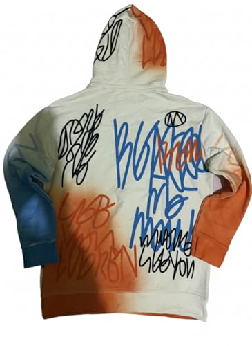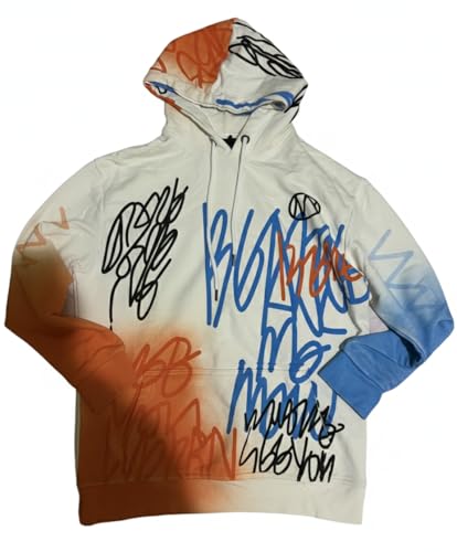 Generic - Graphic Print Hoodie with Graffiti Style Text, White with Orange and Blue Gradient, Size XL