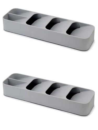 Generic - منظم أدوات مائدة بلون رمادي بأقسام متعددة ينظم السكاكين والشوك والمعالق بشكل أنيق وفعال مع إضافة لمسة أنيقة إلى الدرج (عبوة من قطعتين)