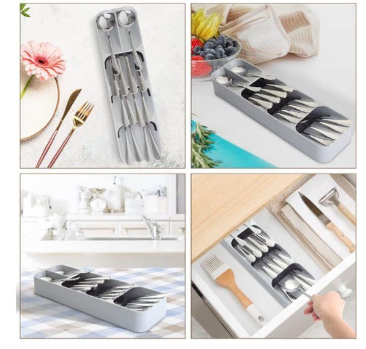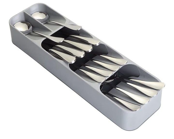 - مساحات تخزين متعددة الاستخدامات وقابلة للتوسيع: فتحات قابلة للتعديل وأقسام متعددة تجعل هذا المنظم مثاليًا للأواني من جميع الأحجام، من الشوك والسكاكين القياسية إلى أدوات المطبخ الأصغر. تسمح ميزته القابلة للتوسيع بملاءمة مثالية لعرض الأدراج المختلفة، مما يضمن أقصى قدر من المرونة والاستخدام الأمثل للمساحة.