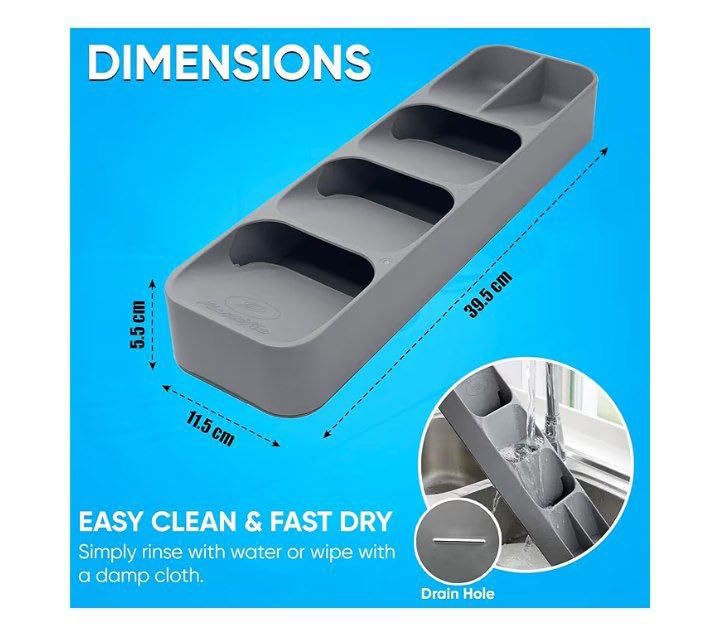 - تصميم رمادي أنيق للمطابخ الحديثة: يكمل اللون الرمادي الأنيق المحايد جميع أنماط المطبخ، من المعاصر إلى الكلاسيكي. لا ينظم تصميمه البسيط أدواتك فحسب، بل يضيف أيضًا لمسة أنيقة إلى أدراجك. حوّل الأدراج الفوضوية إلى مساحة عملية ممتعة بصريًا تعزز بيئة الطهي الخاصة بك دون عناء.