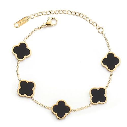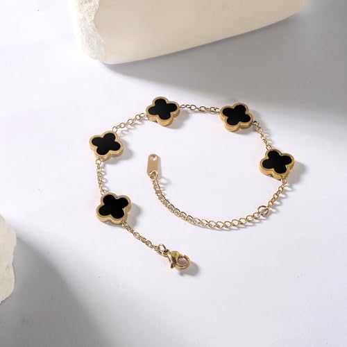 GRBeid - سوار مزدوج الجوانب مطلي بالذهب عيار 18 قيراط للنساء من جي ار بيد، سوار سلسلة الحظ على شكل زهرة دوب اربع اوراق شجر، هدية مجوهرات لطيفة للام والزوجة والابنة في عيد الميلاد