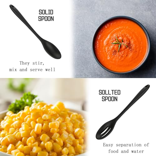 - VERSATILE KITCHEN TOOLS SET : Our cooking utensils include 10 items, slotted turner, deep soup ladle, skimmer, spoon spatula, slotted spoon, pasta server, solid spoon, flexible spatula, kitchen tongs & holder. Satisfy family all cooking needs as frying, serving, scraping, mixing etc, to help you to make delicious food at the most.