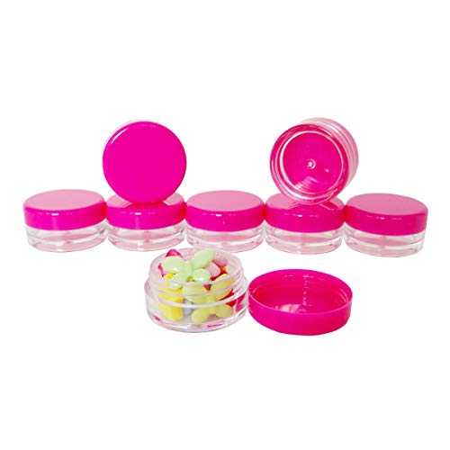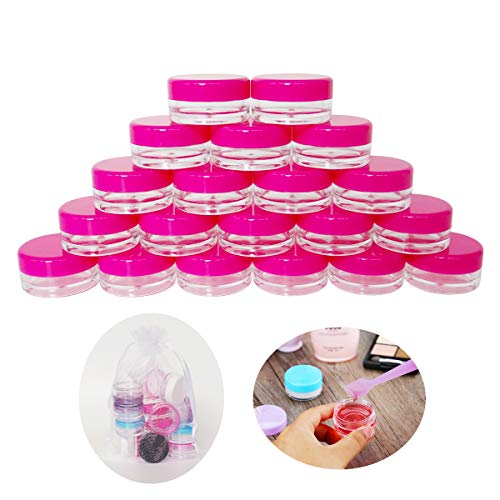 Generic - GreatforU 20pcs, 3Gram 3ml BPA Free Small Jars, Cosmetic Sample Empty Plastic Container Pot W/Rose-Red Screw Cap Lid, for Makeup, Eye Shadow, Nails, Powder, Jewelry, Gems, Beads, Small Travel Size