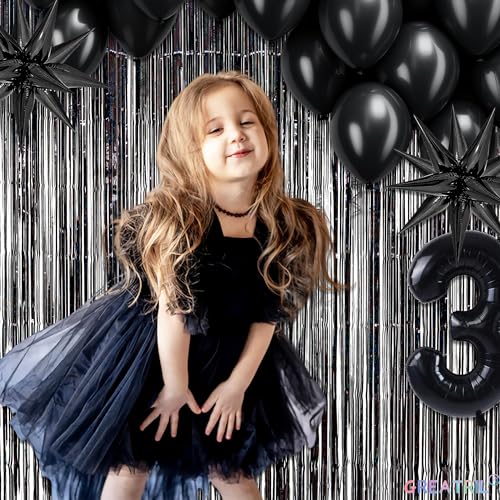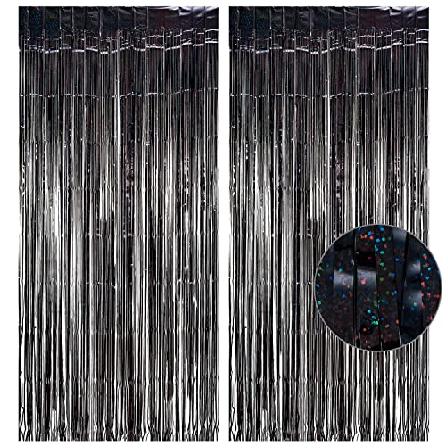 GREATRIL - GREATRIL Black Tinsel Curtain Party Backdrop - Party Streamers Backdrop Foil Fringe Curtains for Birthdays/Wizard Decorations - 1m x 2.5m - Pack of 2