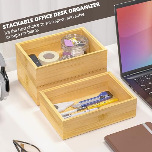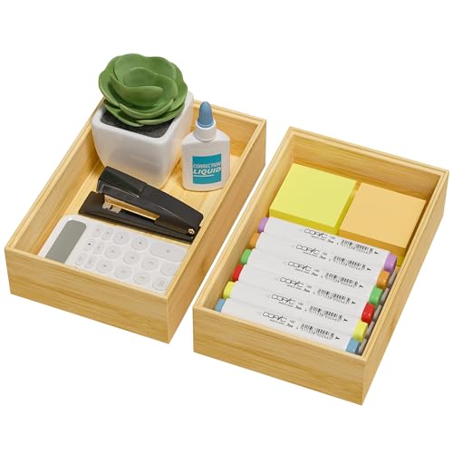 Greatseas - Kitchen Drawer Organizer Bins, Stackable Bamboo Drawer Organizer for Silverware, Flatware, Deep Office Desk Drawer Organizer Tray, Desktop Pen Organizer, Office Organization 9" x 6" x 2.5"