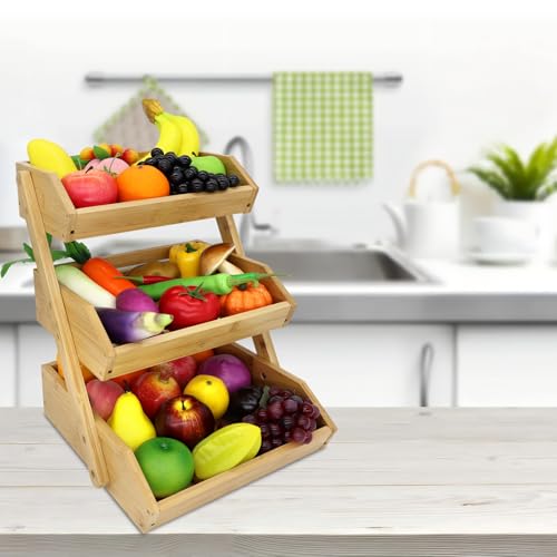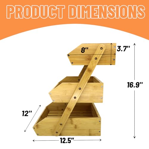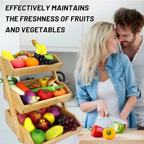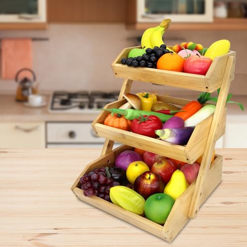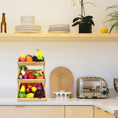 GreeKroupp - Bamboo Fruit Basket 3-Tier for Kitchen Countertop Fruit and Vegetable Storage Large Fruit Basket easy assembly
