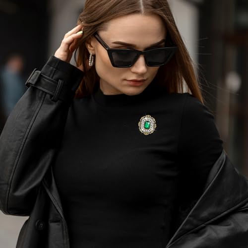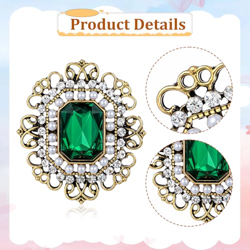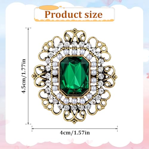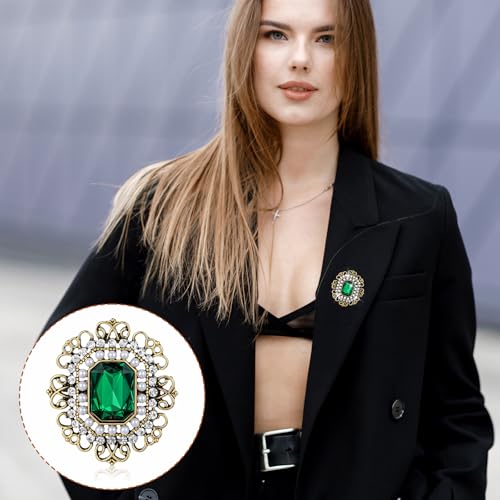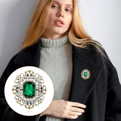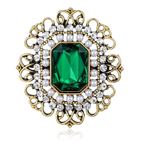 Aeaocvo - بروش ودبابيس عتيقة للنساء والفتيات، بروش مرصع بحجر الراين واللؤلؤ والزمرد والكريستال الباروك، دبوس بروش طية صدر السترة مشبك وشاح للملابس والفساتين والقبعات والشنط