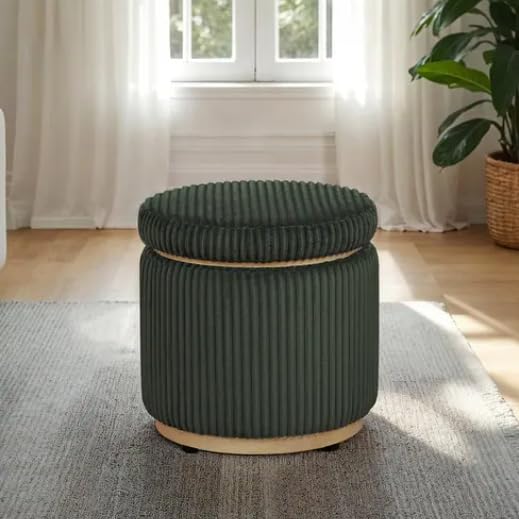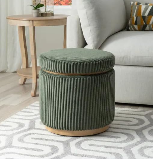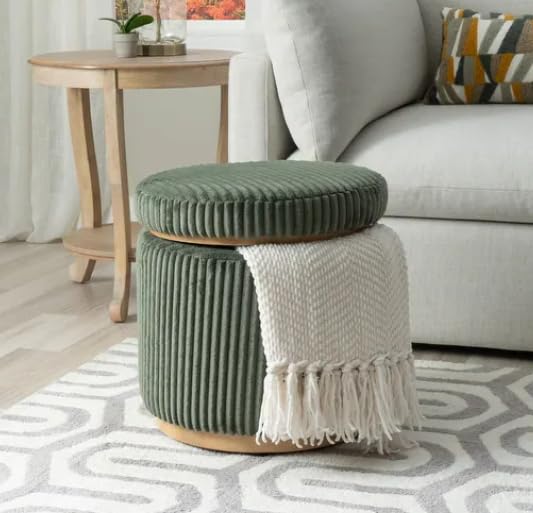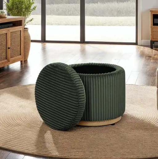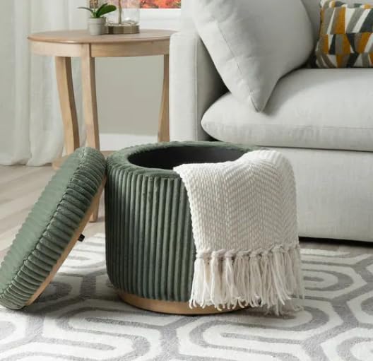 - VERSATILE STORAGE SOLUTION: Round corduroy ottoman features a removable lid that reveals hidden storage space, perfect for organising blankets, magazines, toys, or other household items whilst keeping your living space tidy