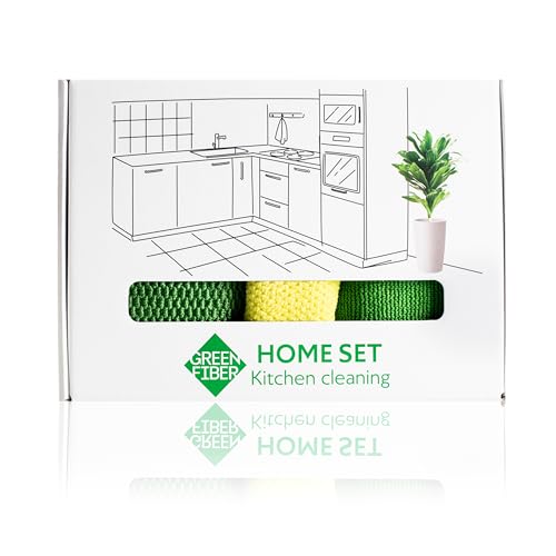 - VERSATILE SET: Complete kitchen cleaning set featuring three specialized fibers for different cleaning tasks - kitchen surfaces, dishwashing, and universal cleaning.