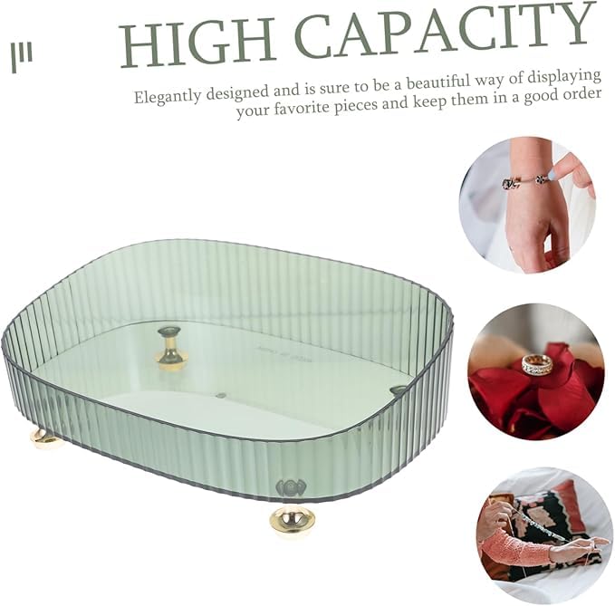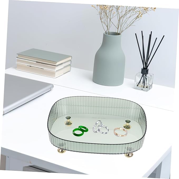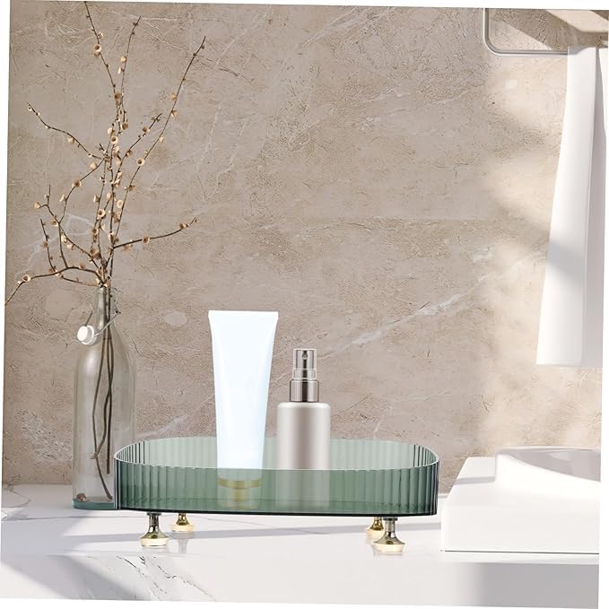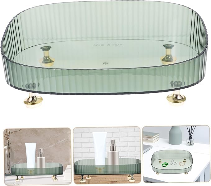 Generic - Green High-Edge Lipstick and Perfume Organizer Tray Plastic Vanity Storage for Jewelry Makeup and Accessories Elegant Dresser Display Four Feet