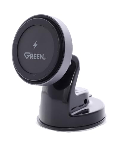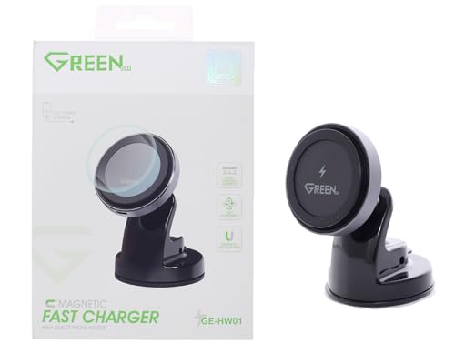 GREEN. - Green HW01 Magnetic Fast Charger, 15W Wireless, Compact and 360 Angle Rotation, for iPhone, AirPods, Qi Devices - Black