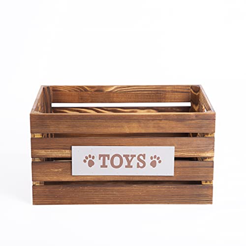 green leaves - green leaves Paw Print Wooden Pet Toys Storage Box Collection Basket Wooden Crates Dog Gift Hampers (Honey Brown, Small)