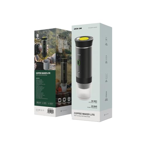Green Lion - ماكينة تحضير القهوة لايت باستخلاص ساخن وبارد ومضخة 20 بار و3 بطاريات 2500mAh وكوب سعة 150 مل وخزان مياه 60 مل، حماية من الحرارة الزائدة، محمولة للسفر والتخييم والأنشطة الخارجية من جرين ليون، أسود