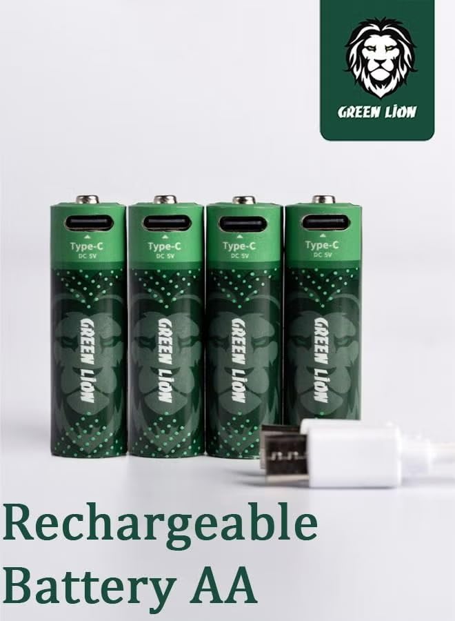 Green Lion - Green Lion Rechargeable Battery AA, Charging indicator: LED (Red light charging, blue light full), Charging Time: 6-8 Hours, Charging Port: Type-C, Energy: 1800mWh, Type: Zn-Ni AA