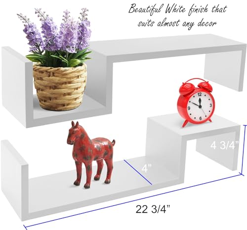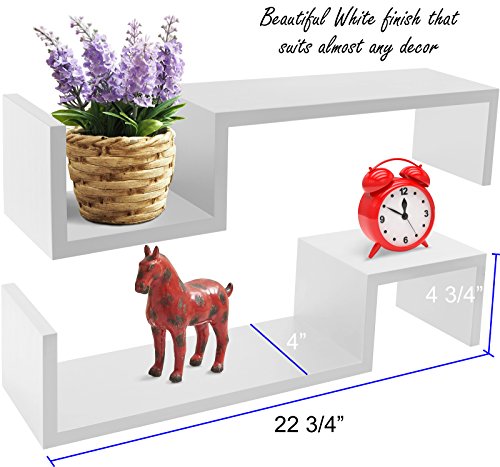 - مجموعة من 2 رف عائم مزخرف على شكل حرف S مصنوع من خشب ليفي متوسط الكثافة متين.