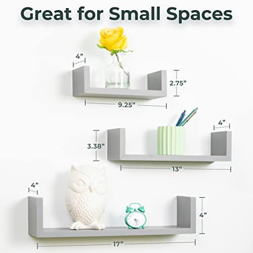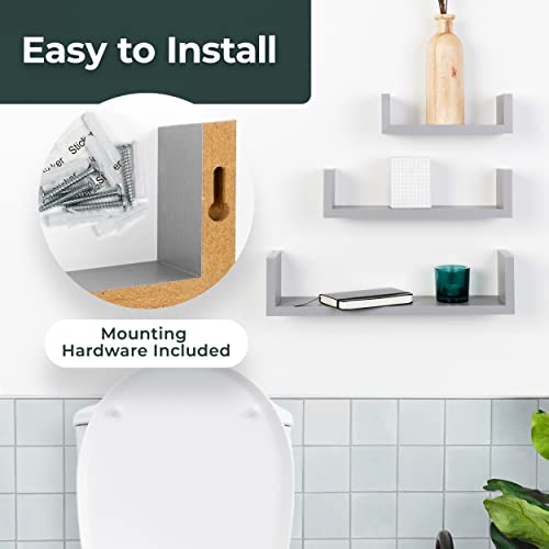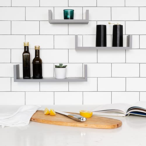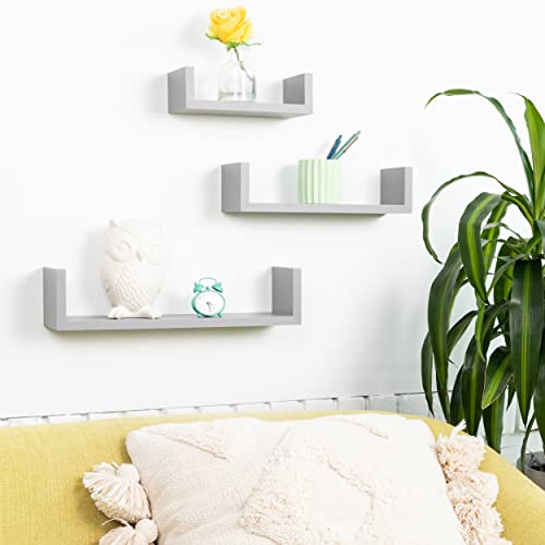 Greenco - Greenco Set of 3 Floating U Shelves, Gray Finish