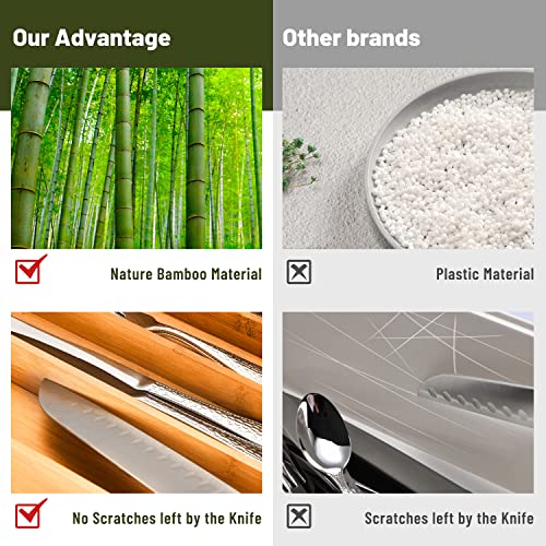 - ✅【خيزران عالي الجودة】تمتلك الشركة مزرعة خيزران خاصة بها، للتأكد من جودة وقوى كل قطعة من الخيزران. لذا يعد منظم الأدوات هذا متين وآمن على الطعام. سلامة الأغذية للمستهلكين هي أولويتنا القصوى.