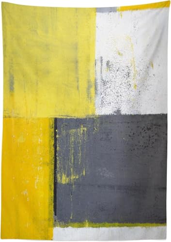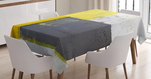 Generic - Grey and Yellow Tablecloth, Street Art Modern Grunge Abstract Design Squares, Rectangular Table Cover for Dining Room Kitchen Decor, 60" X 84", Charcoal Yellow