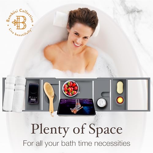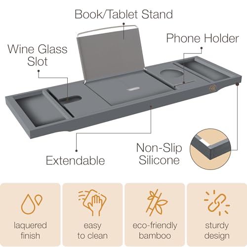 - Spa-Like Relaxation at Home - This expandable bathtub tray holds your wine glass, tablet, phone, candles, and bath essentials, turning your bath into a personal spa. Perfect as a bath tray for tub or caddy for soaking tubs.