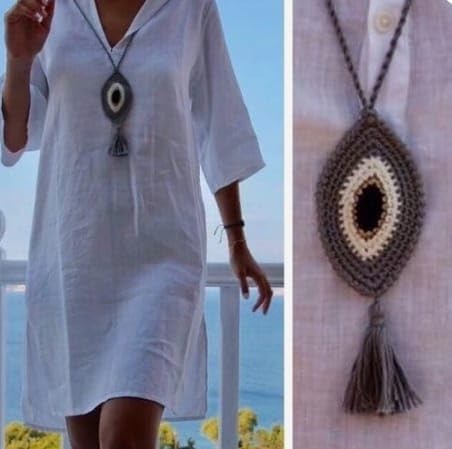 Generic - Grey & Black Eye Crochet Necklace