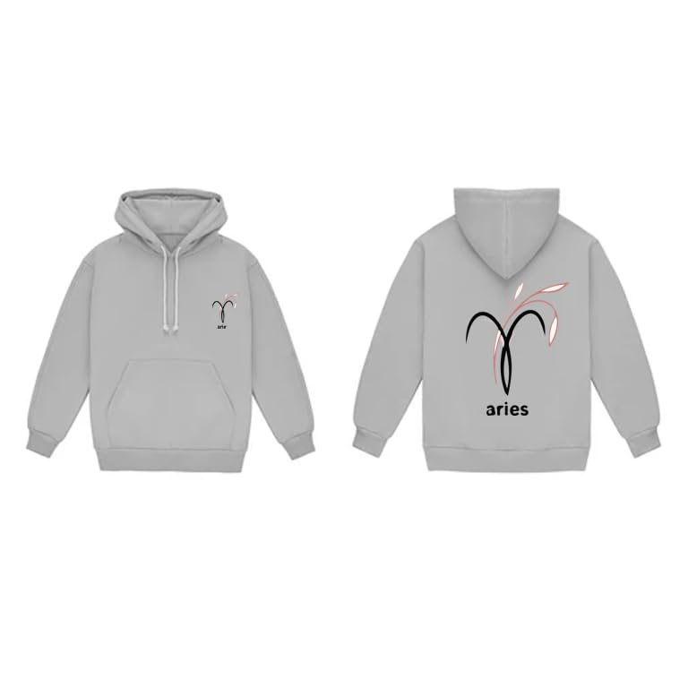 Generic - Grey cotton hoodie with aries zodiac black Logo size (S)