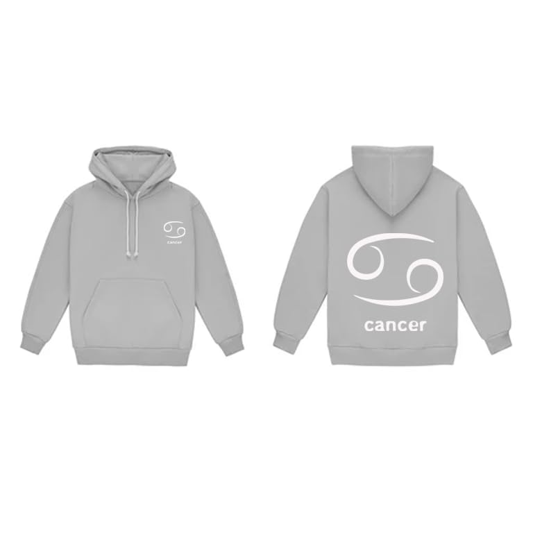 Generic - هودي قطن رمادي مع شعار برج السرطان الابيض مقاس (S)