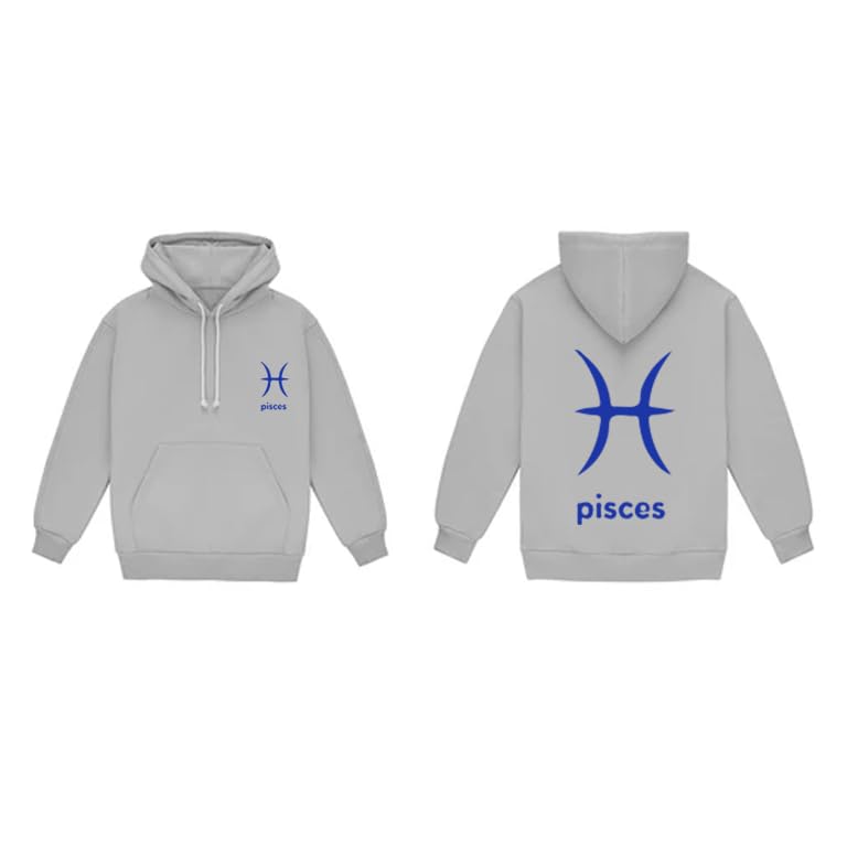 Generic - هودي قطن رمادي مع شعار برج الحوت الازرق مقاس (XL)