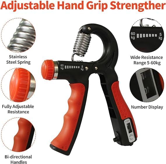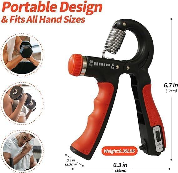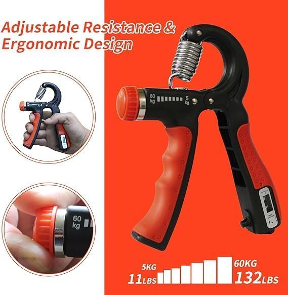 Generic - مدرب قوة قبضة اليد مع عداد، مقوي قبضة اليد مع مقاومة قابلة للتعديل (5-60 كغم)، مقوي الساعد مع مقبض غير قابل للانزلاق لبناء العضلات والتعافي من الاصابات في صالة الالعاب الرياضية/المنزل (برتقالي)