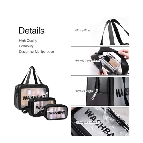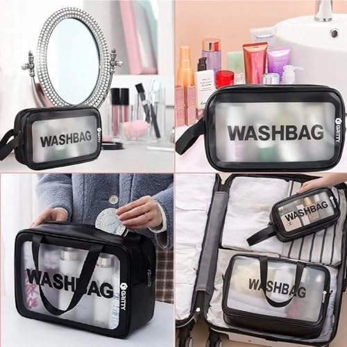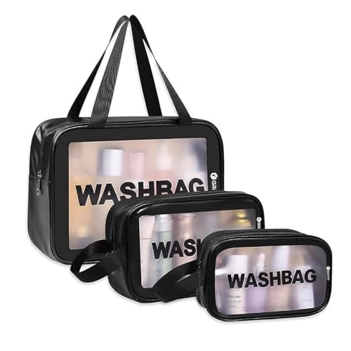 GRITTY - جريتي شنطة غسيل لادوات السفر وادوات الزينة ومستحضرات التجميل وصندوق مكياج للفرش والاكسسوارات مع مقبض، منظم تخزين مقاوم للماء بسعة كبيرة، مجموعة من 3 قطع، لون اسود، اكسسوارات السفر