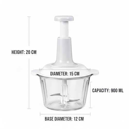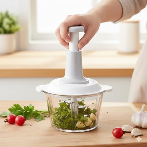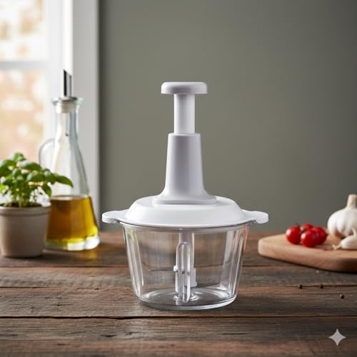 - Effortless Manual Press Operation: Designed with a high-performance top-press pump mechanism that allows you to chop, mince, and blend with minimal physical effort. Simply press down on the ergonomic handle to activate the blades—no electricity or batteries required.