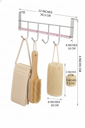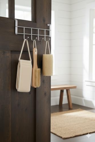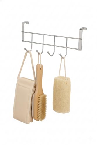 - Space-Saving 4-Hook Design: Features five sturdy hooks arranged on a sleek metal grid, providing ample storage for towels, robes, loofahs, brushes, and accessories without taking up any floor or wall space.
